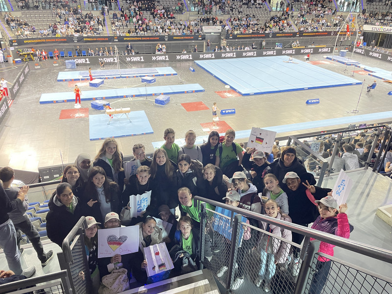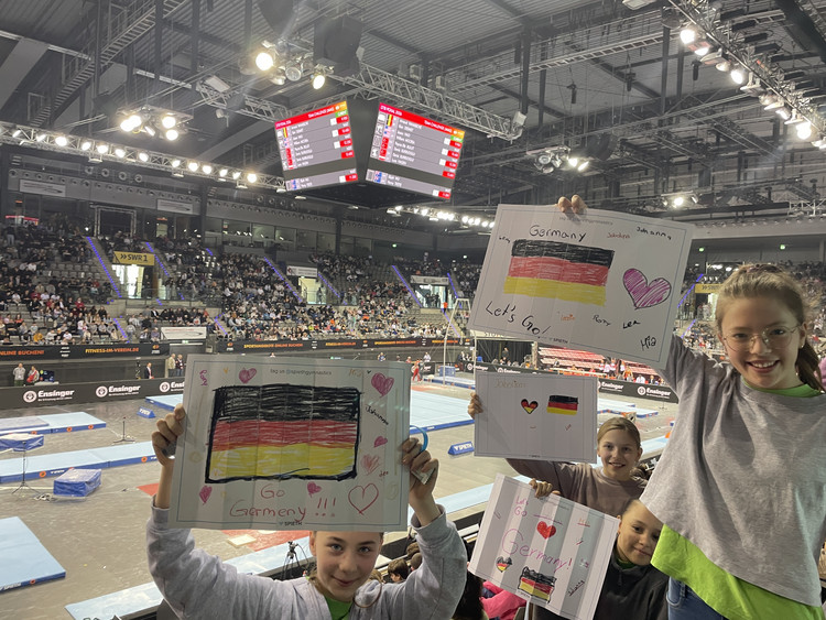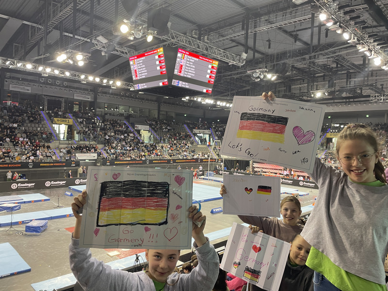 Ein besonderes Highlight war der anschließende Besuch des DTB-Pokals der Männer. Mit selbst gestalteten Schildern feuerten die Kinder die Athleten begeistert an und erlebten hochklassigen Turnsport hautnah.