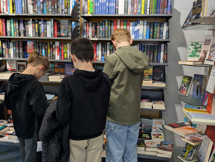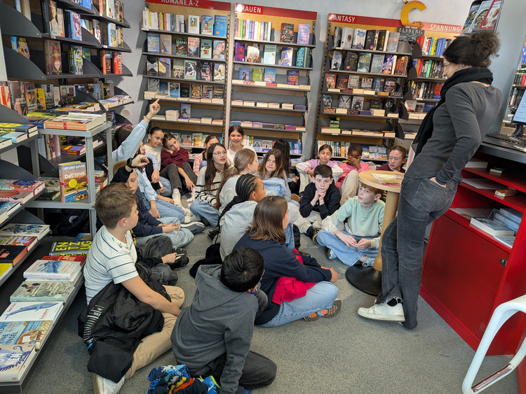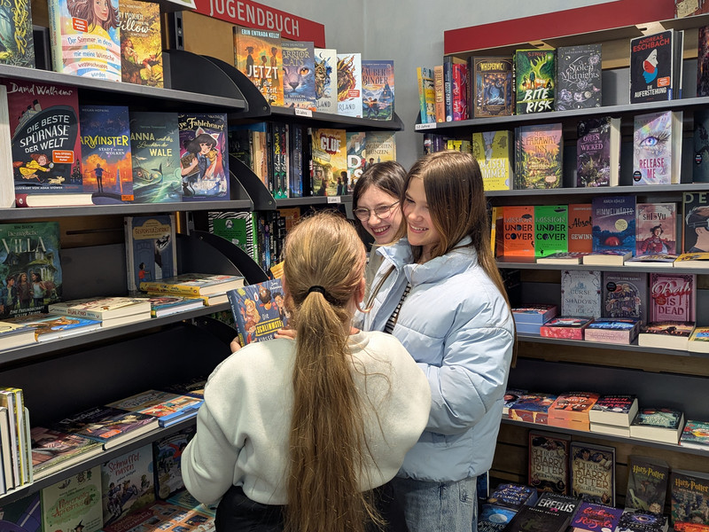Im Anschluss hatten die Schülerinnen und Schüler Zeit, sich in der Buchhandlung umzusehen, in verschiedenen Büchern zu stöbern und eigene Entdeckungen zu machen.