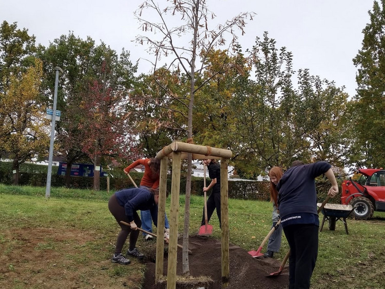 Mehrere neue Bäume wurden auf dem Schulgelände gepflanzt, um künftig für mehr Schattenplätze und ein besseres Mikroklima rund um das Schulhaus zu sorgen.