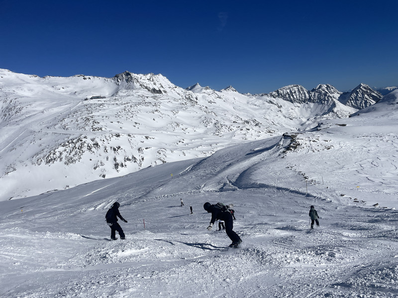 Während es an der Talstation nur regnete, schneite es oben 25 cm Neuschnee. Die weiteren beiden Tage konnten wir dann bei Sonnenschein auf dem Mölltaler Gletscher und im Skigebiet Mallnitz–Ankogel mit jeder Menge Spaß genießen.