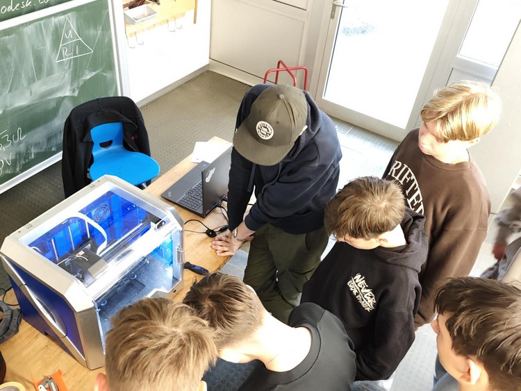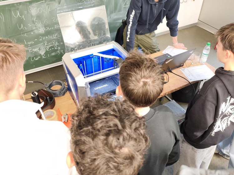 Zum Abschluss wurde das selbst gezeichnete Objekt – ein Chip für den Einkaufswagen – mit dem 3D-Drucker vor Ort hergestellt. So konnten die Schülerinnen und Schüler den gesamten Prozess von der digitalen Planung bis zum fertigen Produkt miterleben.